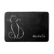 Minimalistische weiße Katze auf einer schwarzen Fußmatte. Personalisieren Sie diese elegante Badematte mit Ihrem Namen.