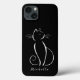 Minimalistische weiße Katze auf einem schwarzen Hintergrund iPhone 13 Gehäuse. Personalisieren Sie diese elegante Telefonzelle mit Ihrem Namen.