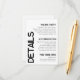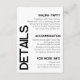 Minimalistische White Black Typografy Wedding Deta Begleitkarte