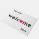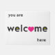 Eine einfache, direkte Mitteilung, "Sie sind Willkommen hier" herstellen diese Türmatte, die eingeladen wird als die durchschnittliche Fußmatte. Ein Herz ersetzt das "O" im Willkommen für addierte Wärme zum glatten, unbedeutenden Entwurf.