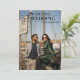 Minimalistische Kalligraphie Zeitung Hochzeit speichern das Datum mit drei Fotos, einem der Bräutigam und Braut als Kinder und eins von ihnen als Erwachsene.