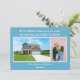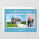 Minimalistische, elegante, trendige, bewegende Ankündigungskarte mit zwei individuellen Fotos, den Familiennamen und dem Text "We ve Moved! Besuchen Sie uns schon bald!" + die neue Adresse und Festnetz-Telefonnummer auf der Vorderseite für Sie personalisieren. Moderner, schicker, türkisblauer Hintergrund mit weißem Schriftsatz.