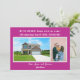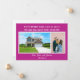 Minimalistische, elegante, trendige, bewegende Ankündigungskarte mit zwei individuellen Fotos, den Familiennamen und dem Text "We ve Moved! Besuchen Sie uns schon bald!" + die neue Adresse und Festnetz-Telefonnummer auf der Vorderseite für Sie personalisieren. Moderner, schicker pinkfarbener Hintergrund mit weißem Schriftzeichen.