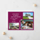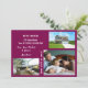 Minimalistische, elegante, trendige Ankündigungskarte mit 3 benutzerdefinierten Fotos, den Familiennamen und den Texten "We've Moved!" und "Komm uns bald besuchen!" + die neue Adresse und Festnetz-Telefonnummer auf der Vorderseite, damit Sie sich personalisieren können. Moderner, schicker, roter Hintergrund mit weißer Schrift.