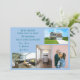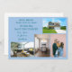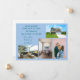 Minimalistische, elegante, trendige Ankündigungskarte mit 4 benutzerdefinierten Fotos, Familiennamen und dem Text "We ve Moved! Besuchen Sie uns schon bald!" + die neue Adresse und Festnetz-Telefonnummer auf der Vorderseite für Sie personalisieren. Moderner, schicker, puderblauer Hintergrund mit staubigen aquamarinen Schriften.