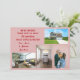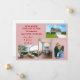 Minimalistische, elegante, trendige Ankündigungskarte mit 4 benutzerdefinierten Fotos, Familiennamen und dem Text "We ve Moved! Besuchen Sie uns schon bald!" + die neue Adresse und Festnetz-Telefonnummer auf der Vorderseite für Sie personalisieren. Moderne, schicke, staubige Rose mit rosafarbenem Hintergrund und rotem Schriftzeichen.