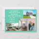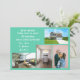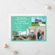 Minimalistische, elegante, trendige Ankündigungskarte mit 4 benutzerdefinierten Fotos, Familiennamen und dem Text "We ve Moved! Besuchen Sie uns schon bald!" + die neue Adresse und Festnetz-Telefonnummer auf der Vorderseite für Sie personalisieren. Moderner, schicker Aquamarine aquamariner Hintergrund mit weißem Schriftzeichen.