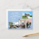 Minimalistische, elegante, trendige Ankündigungskarte mit 4 benutzerdefinierten Fotos, Familiennamen und dem Text "We ve Moved! Besuchen Sie uns schon bald!" + die neue Adresse und Festnetz-Telefonnummer auf der Vorderseite für Sie personalisieren. Moderner, schicker, puderblauer Hintergrund mit weißer Schrift.