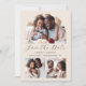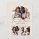 Diese schlichte, minimalistische Save the Date-Karte verfügt über eine 3-Foto-Collage mit einem bogenförmigen Foto oben und zwei kleineren quadratischen Fotos unten. Dazwischen erscheinen die Worte "Save the Date" in elegantem, schwarzen Handschriftenschrift, gefolgt von den Namen des Paares, dem Hochzeitstag und der Stadt in serifenem Schriftart auf beigem Hintergrund. Fügen Sie eine detailliertere Nachricht mit weiteren Informationen auf der Rückseite, zusammen mit einem QR-Code, um Ihren Gästen zu helfen, besuchen Sie Ihre Hochzeitswebsite.
