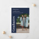Zwei Abschluss oder doppelte Party Einladung-Karte. Zwei Foto des Absolventen erscheint auf der eleganten Party Postcard Einladung. Der Name, die Schule und das Unterrichtsjahr des Absolventen sind in lässiger, moderner schwarzer Schrift auf der Rückseite geschrieben.