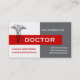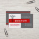 Caduceus Doktor moderne minimalistisch graue, weiße, rote weibliche Visitenkarte mit einem schwarzen Caduceus Doktorschild auf weißem, grauem und weißem Hintergrund und dem Text "DOCTOR" in einem roten Band. Perfektes berufliches medizinisches Visitenkartendesign für Ärzte.