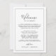 Diese minimalistische Begrüßungstour und Kartenkarten sind perfekt für eine Begrüßungstasche der Hochzeit in Urlaubsort. Das moderne romantische Design besticht durch klassische schwarz-weiße Typografie gepaart mit einer rustikalen und eleganten Kalligraphie mit Vintagem handgeschriebenem Stil. Anpassbar in jeder Farbe. Behalt das Design einfach und elegant, wie es ist, oder personalisiere es durch Hinzufügen von eigenen Grafiken und Kunstwerken. Auf der Vorderseite der Karte finden Sie einen Begrüßungsbrief und eine Reiseroute. Geben Sie eine Karte Ihres Resorts mit den wichtigsten Orten auf der Rückseite der Karte an.