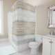 Minimalistischer, beige-weißer Marmor mit modernem Duschvorhang