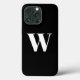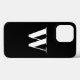 Individuell, personalisieren Monogramm, Initial, Buchstaben Schwarz-Weiß minimalistisch moderne elegante klassische schicke stilvolle iPhone Gehäuse. Anpassbarer weißer Text, schwarzer schlichter Hintergrund.