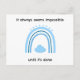 Dieses wunderschön handgezeichnet Design zeichnet sich durch einen minimalistisch blauen Regenbogen mit einer flauschigen weißen Wolke aus. Das inspirierend Zitat "Es scheint immer unmöglich, bis es getan ist" motiviert und ermutigt jeden, der Set darauf. Die blaue Farbe des Regenbogens steht für Ruhe und Frieden, während die Wolke das grenzenlose Potenzial unserer Träume symbolisiert. Perfekt für diejenigen, die einen kleinen zusätzlichen Schub benötigen, um ihre Ziele und Ziele zu erreichen, wird dieses Design inspiriert und jeden, der es empfängt, hochheben.