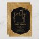 Eine schlichte, moderne, elegante und schicke 40. Geburtstagsschablone für Frauen mit einem Deko-Thema, mit einem Hintergrund aus goldenen Sequenzen, dem Wort PARTY in moderner Kalligrafie sowie einem eleganten Rahmen mit schwarzem Hintergrund. Eine schicke Kunst Deko Geburtstagsgestaltung für eine Frau an ihrem vierzigsten Geburtstag.