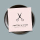 Minimalistische, anpassbare Visitenkartenvorlage mit blassem Rose/weißem Hintergrund und schwarzer Schere. Elegantes Design, perfekt für Friseur, Friseur.
