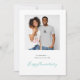 Minimalistischer Foto Name Custom Aquamarin Anniversary Card. Zeitgemäßer Stil, um Ihren Partner Jubiläumswünsche mit diesem vollständig anpassbaren Design zu senden. Ihr Lieblings-Foto ist im quadratischen Format mit Ihrem Gruß unten in einfachem Sans-Schrift und Happy Anniversary oder Ihre ausgewählte Begrüßung am Ende in einem eleganten, handgeschriebenen Stil Skript. Sie können auch mit Ihrer Nachricht auf der Rückseite personalisieren. Ersetzen Sie das Beispiel-Foto im Platzhalter für die Vorlage einfach durch Ihr eigenes. Sie können auch den weißen Hintergrund auf der Vorderseite und den aquamarinen auf der Rückseite sowie die Textfarben und -stile ändern, indem Sie die weitere Option anpassen
