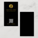 Eine luxuriöse Visitenkarte in schwarz und gold, ideal für Firmen oder kleine Unternehmen, die eine minimale Visitenkartenvorlage mit einfachen Kontaktdetails und scannbarem QR-Code wünschen. Passen Sie das Firmenlogo, den Namen des Unternehmens und des Berufs und den Kontakt an. Eine einfache berufliche Visitenkarte, die perfekt für erste Eindrücke geeignet ist.