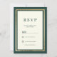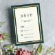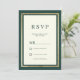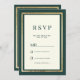 Ein elegantes, modernes Elfenbein, Waldgrün und goldgelber Luxus-Luxus Wedding RSVP Einladung ist perfekt für jede stilvolle und raffinierte Zeremonie. Dieses exquisite vergoldete goldene Waldgrün strahlt ein einfaches Design aus und ist perfekt für das trendige und stilvolle Paar oder für jeden. Passen Sie dieses Design mit Ihren eigenen Nachrichten und personalisierten Informationen an. Alle Designs sind bedruckt