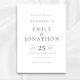 Minimalistischer grauer Text Hochzeit speichern das Datum. Verfügbar in digitaler Form und gedruckt. Ein vollständig anpassbares Design. Einfach mit Ihren Daten personalisieren.