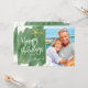 Das minimalistische Design des Strandes Happy Holidays von Nautical Boutique Co. besticht durch moderne handgeschriebene Schriftzeichen und Ihr beliebtes Foto (12x18 Ratio). Das Design ist mit goldenen Aquarelltönchen und Aquarellsternchen, für ein lustiges tropisches Urlaubsthema, und ist Set auf einem reichen weihnachtlich grünen Aquarellhintergrund. #MerryChristmas #HolidayCards #TropicalHolidays