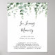 Dieser minimalistisch grüne Eukalyptus in liebevollem Erinnerungsschild ist perfekt für eine einfache Hochzeit oder ein Brautparty. Das Design bietet Aquarellfarben handgezeichnet elegante botanische Eukalyptuszweige und Blätter.