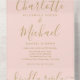 Minimalistischer Hochzeitsstichtag in Rosa und Gol All In One Einladung