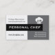 Persönliche Koch minimalistisch augenblickliche, graue, weiße, schwarze Visitenkarten mit weißer Koch-Kappe - Spielzeug mit Gabel, Löffel und Messer auf schwarzem Hintergrund und der Text "Persönlicher Koch" in einer schwarzen Band. Perfektes berufliches Design für Köche, Köche, kulinarische Genüsse, Koch de Cuisine, Führungskraft Koch, Koch Manager.