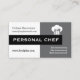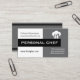 Persönliche Koch minimalistisch augenblickliche, graue, weiße, schwarze Visitenkarten mit weißer Koch-Kappe - Spielzeug mit Gabel, Löffel und Messer auf schwarzem Hintergrund und der Text "Persönlicher Koch" in einer schwarzen Band. Perfektes berufliches Design für Köche, Köche, kulinarische Genüsse, Koch de Cuisine, Führungskraft Koch, Koch Manager.