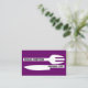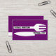 Persönliche Koch minimalistische Visitenkarten lila weiß, mit einem weißen Messer und einer Gabel auf lila Hintergrund und Text in schwarz. Ideal für Köche, Köche, Koch de Cuisine.