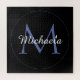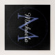 Minimalistischer blauer Kreis Modernes Monogramm mit blauem Initial- und Weißnamen auf schwarz. Personalisierbarer individuelle Name mit einer Serif, die auf einer schwarzen Farbe initialisiert wurde.