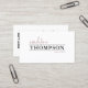 Das Design dieser Visitenkarte ist sauber, minimalistisch und beruflich. Es zeichnet sich durch einen weißen Hintergrund mit einer Kombination aus eleganten, kursiven und kühnen Serifen-Schriftart aus. Der Kursivtext ist über dem fett gedruckten Text positioniert und fügt eine weiche und künstlerische Touch hinzu. Eine horizontale Linie trennt den Haupttext, was zu einem ausgewogenen Layout beiträgt. Die Karte verwendet eine gedämpfte Farbpalette, einschließlich Schwarz und Mauve. Die Ästhetik betont Einfachheit und Eleganz.