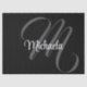 Minimalistische moderne Monogramm Anfangsname Schwarz-weiß. Personalisierbarer individuelle Name mit einem kursiven Initial hinter einer schwarzen Farbe.