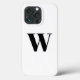 Individuell, personalisieren Monogramm, Initial, Buchstaben Schwarz-Weiß minimalistisch moderne elegante klassische schicke stilvolle iPhone Gehäuse. Anpassbarer schwarzer Text, weißer schlichter Hintergrund.