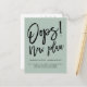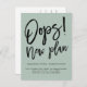 Hoppla! Neuer Plan, Moderne lustige lässige Skriptehe ändern das Datum mit einer handgeschriebenen Stil Typografie auf sage grün, alle Farben sind bearbeitbar, mit einfachen und minimalistischen Weiß, um die Verschiebung Ihrer Hochzeit und neue Pläne bekannt geben
