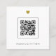 Es ist vielleicht die wirtschaftlichste Art, Hochzeitseinladungen an Freunde und Familie zu schicken. Dieses minimalistische Design verwendet quadratische Visitenkarten. Auf der Vorderseite, fügen Sie den QR-Code Ihrer Hochzeitswebsite. Sie müssen das hier hochladen, um das Beispiel zu ersetzen. Sie können Ihren QR-Code kostenlos online erhalten oder sich an den Anbieter der Website wenden. Dann fügen Sie Ihre Vornamen hinzu. Auf der Rückseite fügen Sie eine persönliche Nachricht hinzu und erklären Ihren Gästen, was sie tun müssen. Weisen Sie Ihre Gäste an, den Code zu scannen und den Leuten Ihre Website-URL oder Website-Adresse für diejenigen, die nicht gewollt, um den Code zu scannen. Diese Einladung rette Ihnen Geld, weil Sie keine RSVP-Karten senden müssen. Beachten Sie, dass dies die Größe einer Visitenkarte ist, nicht die Größe einer Standardeinladung.