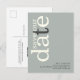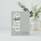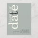 Minimalistisch Sage Ivory QR Code Text Save the Date. Ein modernes typografisches Design in naturbelassenen Tönen, um Ihre Familie und Freunde zu einem rett Ihres Datums einzuladen, mit Rett Our Date in großer Typografie rotiert und auf der verlassen Seite oben in Elfenbein, mit einem grauen Buchstaben "t" auf einem Hintergrund von hellen Salbei grün. Personalisieren Sie die Erholung des Textes einfach. Fügen Sie Ihren QR-Code auf der Rückseite Ihrer Hochzeitswebsite hinzu, indem Sie den QR-Code des Beispiels ersetzen. Sie können QR-Codes kostenlos online erstellen. Suchen Sie einfach nach "QR Code Creator" und viele Optionen werden kostenlos erstellt.