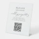Elegantes, klassisches, Minimalistisches, kalligrafisches QR-Zeichen für das Hochzeitsprogramm Pedestal Sign