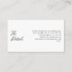 Erhöhen Sie die Komplexität Ihrer Hochzeit mit unserer "Minimalistischen Wedding Calligraphy QR Code Details Enclosure Card". Diese Karte verbindet Modernität und Eleganz und zeichnet sich durch ein sauberes Schwarz-Weiß-Design aus. Der Schwerpunkt dieser Karte liegt in den wunderschön geschriebenen "Details" in der Kalligrafie, die eine Touch zeitlosen Charmes schaffen. Die Rückseite der Karte bietet ausreichend Platz für einen QR-Code und sorgt für einen einfachen Zugang zu den Online-Hochzeitsdetails für Ihre Gäste. Die Einfachheit und Eleganz dieses zeitgenössischen Designs machen es möglich, die Karte mit Ihrem personalisierten Text zu gestalten. Wählen Sie unsere Minimalistische Wedding Calligraphy QR Code Details Enclosure Card für eine moderne, elegante und anpassbare Ergänzung Ihrer Hochzeitsarbeit.