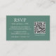 Moderne Minimalistische Einfache Hochzeitskarte RSVP. Eukalyptus Grün & Weiß oder wählen Sie Ihre eigenen Farben. Fügen Sie Ihre Website oder Webadresse zum QR Scan Code hinzu.