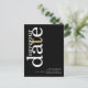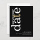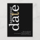 Minimalistischer weißer Goldbarren QR-Code Save the Date. Ein modernes typografisches Design, um Ihre Familie und Freunde zu einem rett Ihres Datums einzuladen, mit Rett Our Date in großer Typografie rotiert und auf der links Seite oben in Weiß, mit einem goldenen Buchstaben "t" auf einem Hintergrund von klassisch schwarz Einfach personalisieren die Erholung des Textes. Fügen Sie Ihren QR-Code auf der Rückseite Ihrer Hochzeitswebsite hinzu, indem Sie den QR-Code des Beispiels ersetzen. Sie können QR-Codes kostenlos online erstellen. Suchen Sie einfach nach "QR Code Creator" und viele Optionen werden kostenlos erstellt.