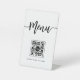 Machen Sie einen unvergesslichen Eindruck mit unserem Minimalistischen QR Code White Pedestal Sign. Dieses zeitlose elegante Design besticht durch ein elegantes Menu-Skript und ein Firmenlogo vor einem klaren, weißen Hintergrund. Es wird definitiv das gastronomische Erlebnis Ihrer Kunden erhöhen.