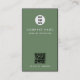 Eine erdgrüne Visitenkarte, ideal für Unternehmen oder kleine Unternehmen, die eine minimale Visitenkartenvorlage mit einfachen Kontaktdetails und einem scannbaren QR-Code wünschen. Passen Sie das Firmenlogo, den Namen des Unternehmens und des Berufs und den Kontakt an. Eine einfache berufliche Visitenkarte, die perfekt für erste Eindrücke geeignet ist.