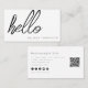 Ein modernes Design mit weißem Hintergrund und das Wort "hallo" als Herzstück in einem handgeschriebenen Skript-Schriftart. Eine einfache personalisierte Visitenkarte für Damen und Herren, die eine Fackel für Stil haben. Eine einfache und berufliche Art, Ihr Unternehmen vorzustellen. Personalisieren Sie Ihren QR-Code, Social Media-Kontakte und Details, um Ihre eigene Visitenkarte zu erstellen.