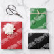 Minimalistisches Rot-Grün Schwarz-Weiß-Schlitten-Muster Weihnachtsgeschenk Wrapping Paper Sheets. Farbmischung.