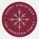 Fügen Sie Ihren Urlaubsgeschenken eine personalisierte Touch mit diesen minimalistischen Schneeflockern hinzu. Die individuell gestalteten Ferienaufkleber verfügen über eine einfache weiße Schneeflocke in der Mitte mit Ihrem individuellen Gruß und Familiennamen in weißer Schrift auf bordeauxrotem Hintergrund oder Farbe Ihrer Wahl. Die modernen Ferienaufkleber sind ideal, um Geschenkverpackungen, Urlaubsparty-Gefälligkeitstaschen, Umschlag Aufkleber und vieles mehr hinzuzufügen!