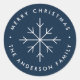 Fügen Sie Ihren Urlaubsgeschenken eine personalisierte Touch mit diesen minimalistischen Schneeflockern hinzu. Die individuellen Ferienaufkleber verfügen über eine einfache weiße Schneeflocke in der Mitte mit Ihrem individuellen Gruß und Familiennamen in weißer Schrift auf einem marineblau-Hintergrund oder einer Farbe Ihrer Wahl. Die modernen Ferienaufkleber sind ideal, um Geschenkverpackungen, Urlaubsparty-Gefälligkeitstaschen, Umschlag Aufkleber und vieles mehr hinzuzufügen!