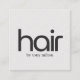Elegantes SQUARE-individualisierbares Visitenkarten-Template mit weißem Hintergrund und fett formatiertem Haartext. Das minimalistische elegante Design, perfekt für Friseur, Friseur, Friseur.