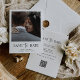 Diese einfache und elegante Schwarz-Weiß-Hochzeit speichert die Dattelkarte mit Ihrem persönlichen Foto auf der Vorderseite, mit einer Mischung aus modernen handgeschriebenen Skripten und fett formatierten Serif-Text. Es gibt Platz für weitere Informationen auf der Rückseite, einschließlich Ihrer Hochzeitswebsite, sowie einen scannbaren QR-Code.